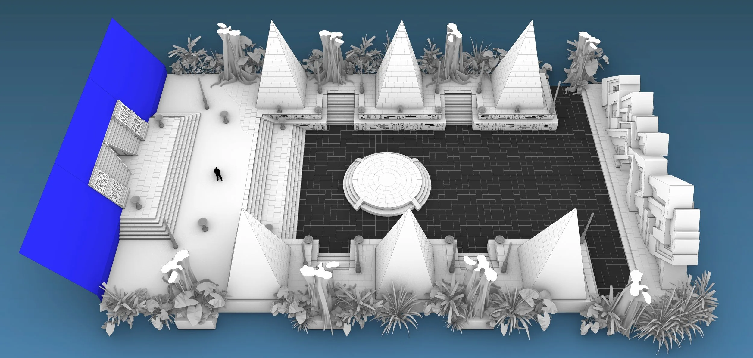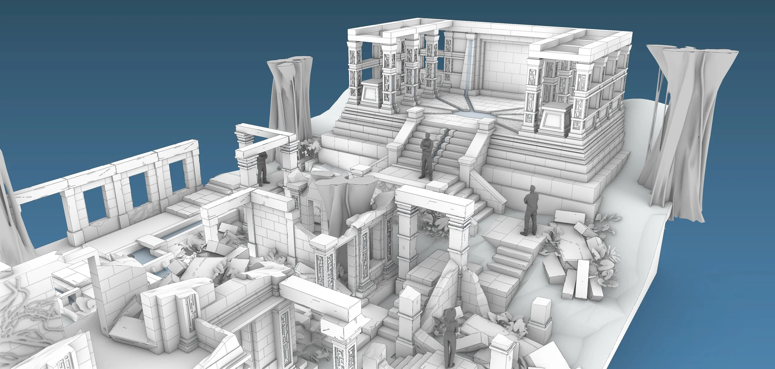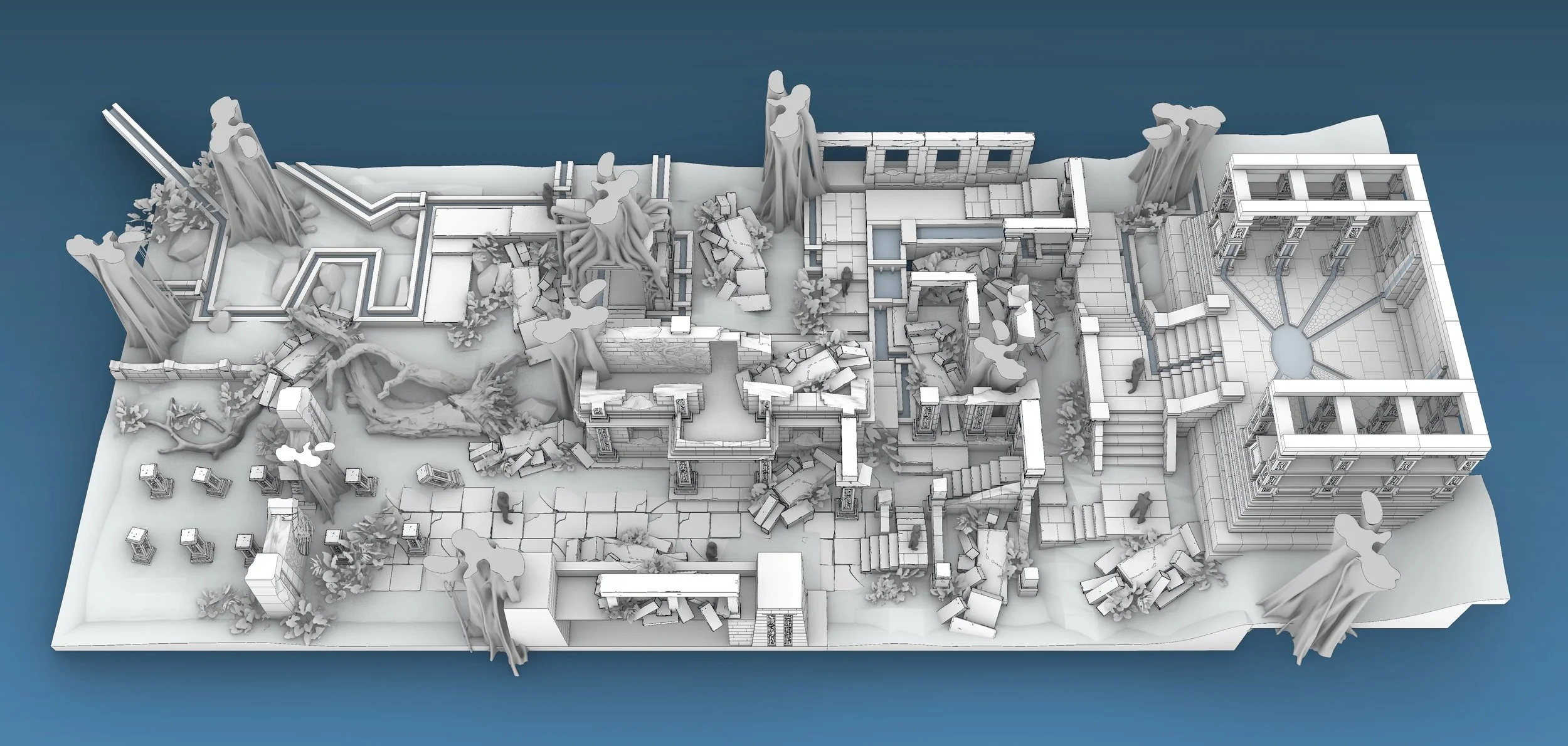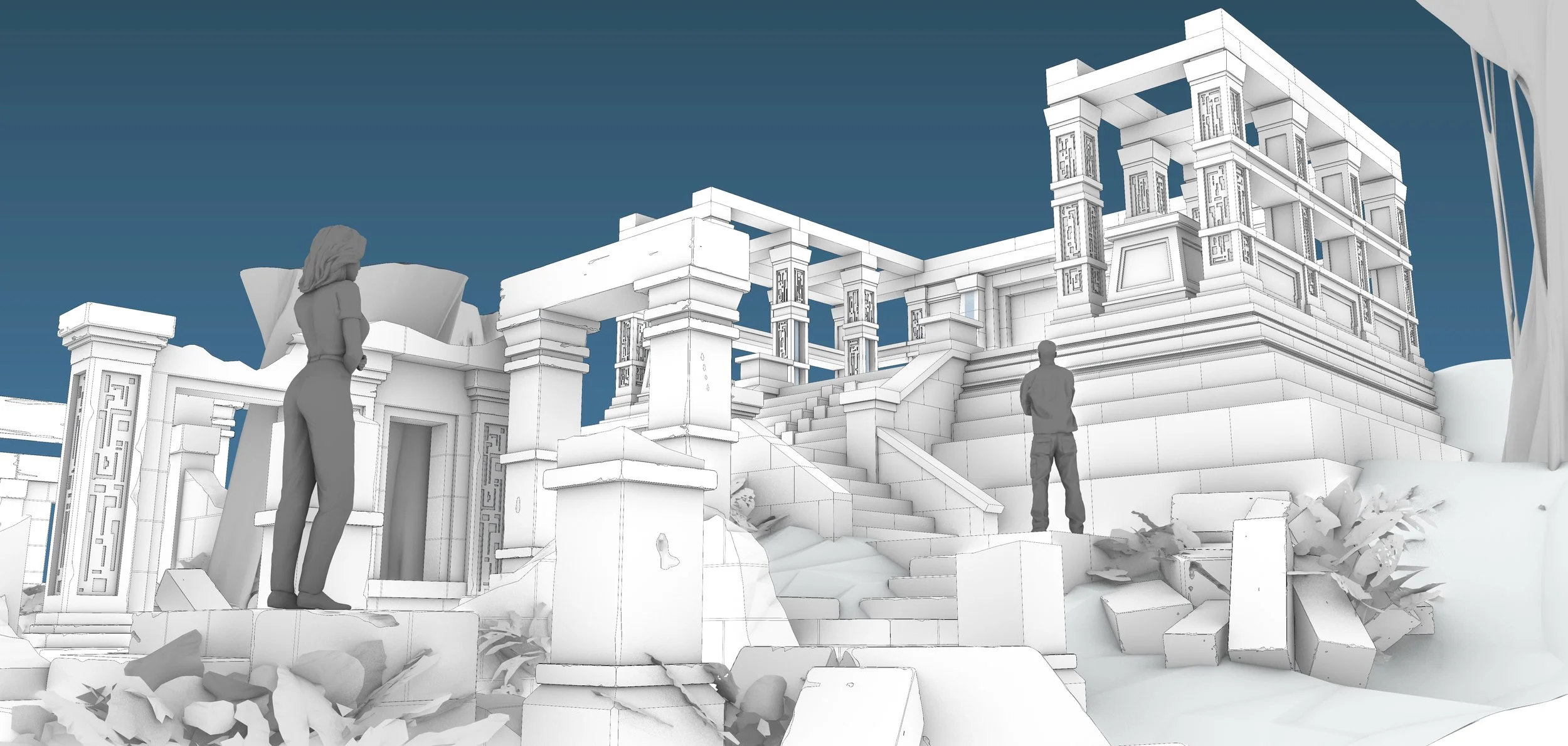 The Iwi Ruins and Village sets (pictured) designed with Art Direction by Matt Wynne. Filmed at Village Roadshow Studios in Queensland, Australia.